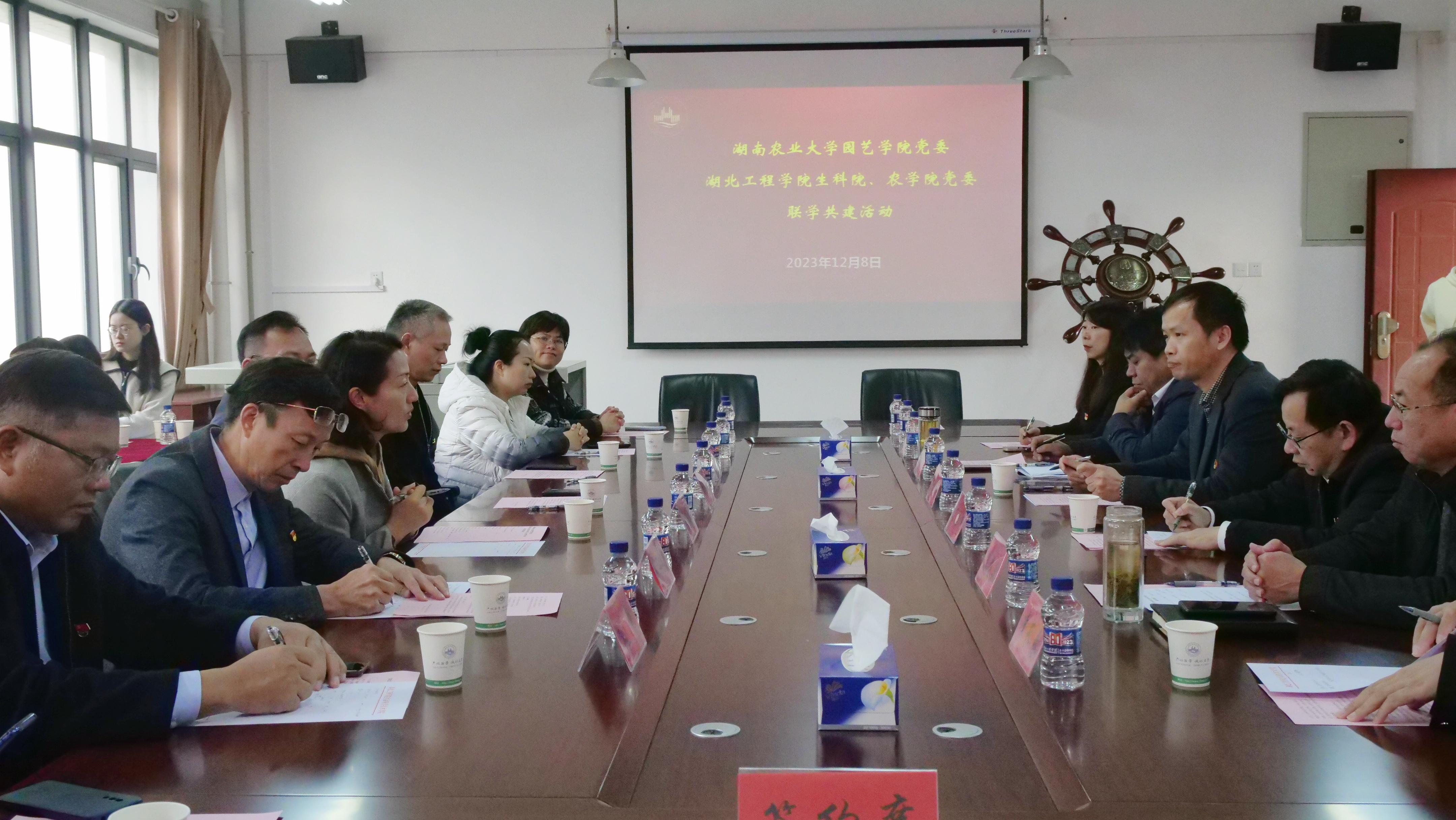 (通讯员 彭淼 唐雅伦)12月8日,诸侯快讯ok1122党委书记覃红燕带队到湖北工程学院考察交流,与该校生命科学技术学院、农学院党委开展联学共建活动。湖北工程学院党委副书记、副校长丁远坤,生科院、农学院院长姜益泉,党委书记陈敢及院党委成员、园艺专业党员教师参加联学共建活动。活动由覃红燕、陈敢共同主持。
