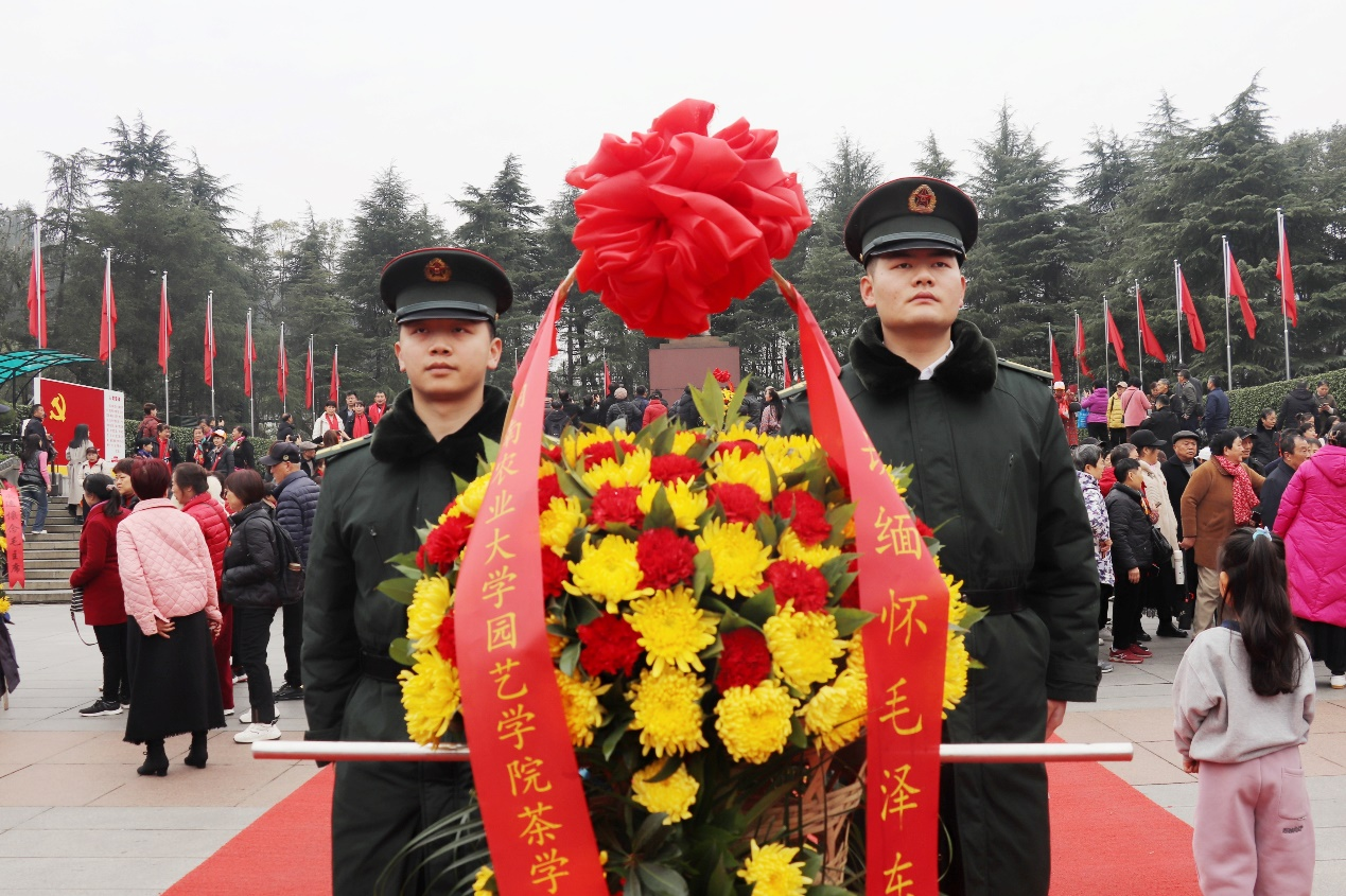 教师们在毛泽东铜像前敬献花篮、鞠躬致敬,表达深切的敬仰缅怀之情,并重温入党誓词,全体党员面对党旗郑重宣誓,坚定忠诚信念,铿锵有力的宣誓声回响在伟人故里。