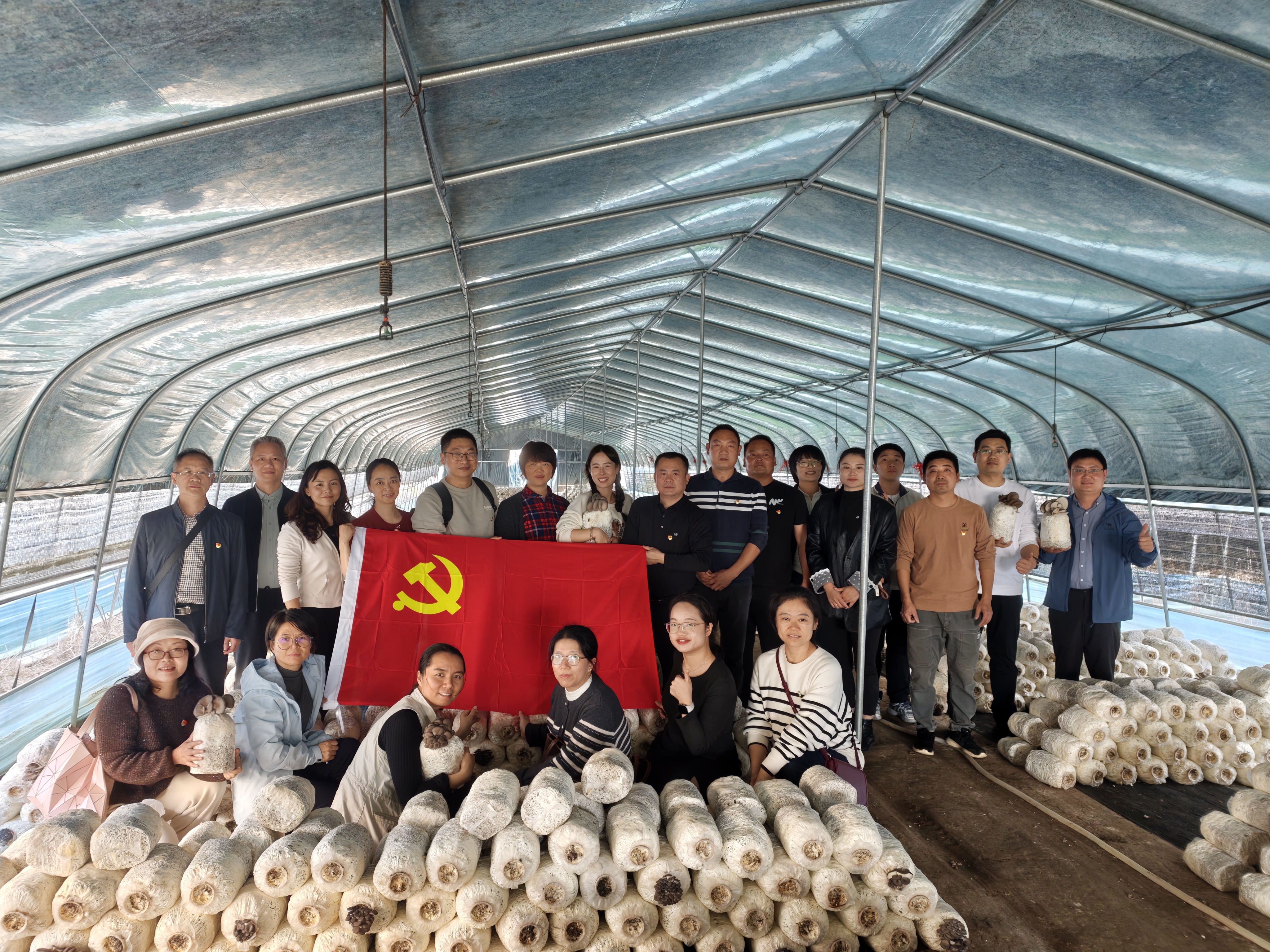 在杨林寨乡食用菌产业基地,党员们实地调研食用菌生产现状,围绕品种筛选、环境调控等关键技术环节提出优化建议。现场,支部与基地正式签订科技帮扶协议,推动校地合作走深走实、落地见效。