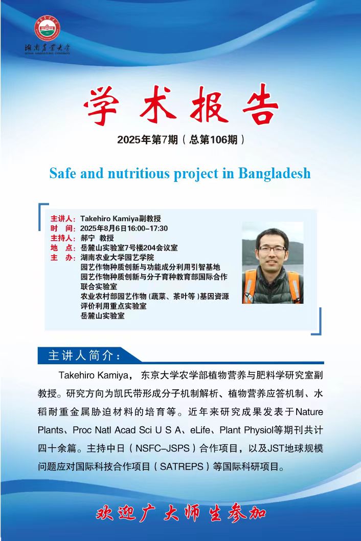 园艺讲坛第106期-名师讲坛: Safe and nutritious project in Bangladesh