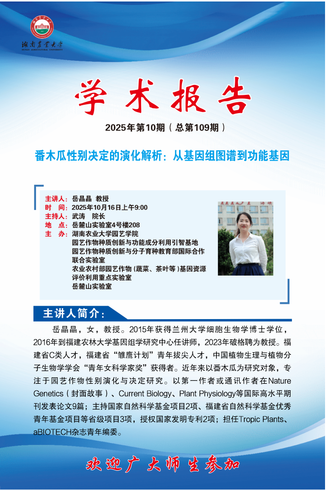 园艺讲坛第109期-名师讲坛:番木瓜性别决定的演化解析:从基因组图谱到功能基因