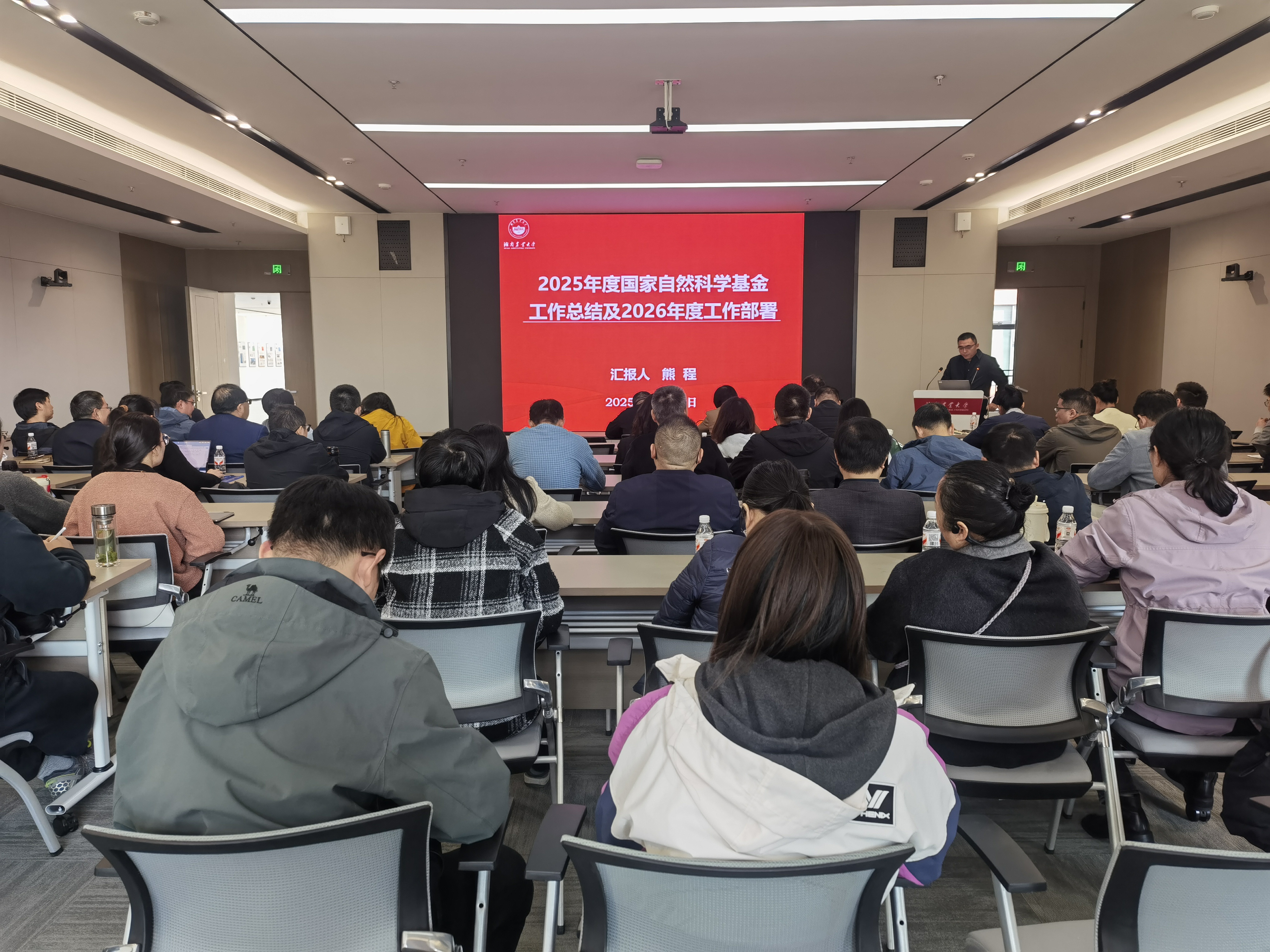 熊程副院长全面总结分析了学院 2025 年度国家自然科学基金申报及获批情况,并对 2026 年度基金申报工作作出全面部署。他强调,2026 年基金申报工作中,学院将重点实施 “应报尽报、拓展申报项目类型、提升申请书质量” 三大举措,同时明确了具体进度安排,要求科研人员严格按照学院部署稳步推进相关工作。