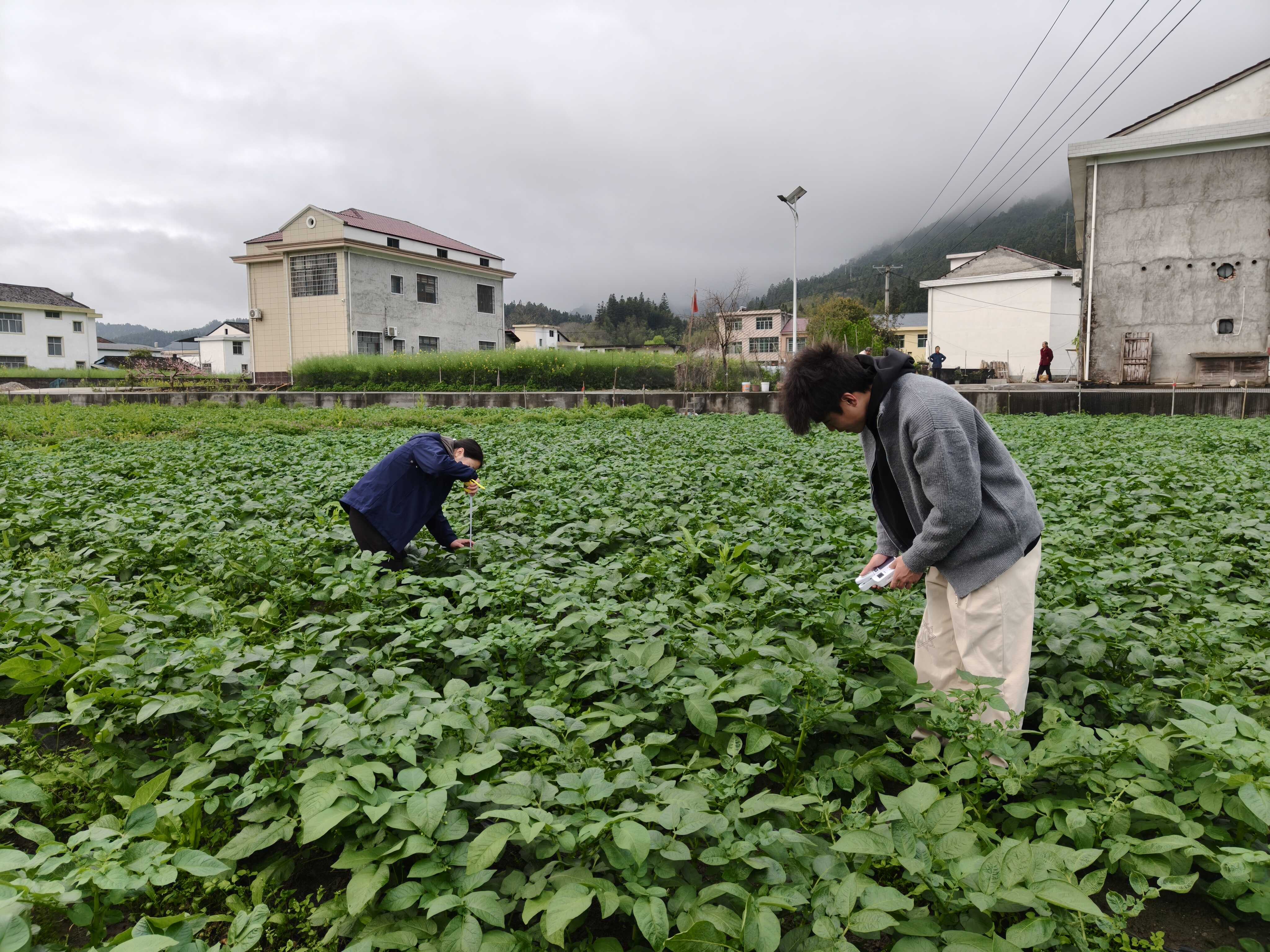 清晨,学生们挽起被露水打湿的裤脚,在试验田里,志愿服务队严格按照方案,规范布设小区、统一薯块规格、精准定植,确保每一组数据真实可靠,同学们逐垄调查出苗日期与出苗率,大家手持尺子和记录本,一垄一垄仔细察看、一丝不苟地记录。哪怕是一株出苗差异、一天时间偏差,都详细归档,为晚疫病药效评价积累最珍贵的第一手资料。