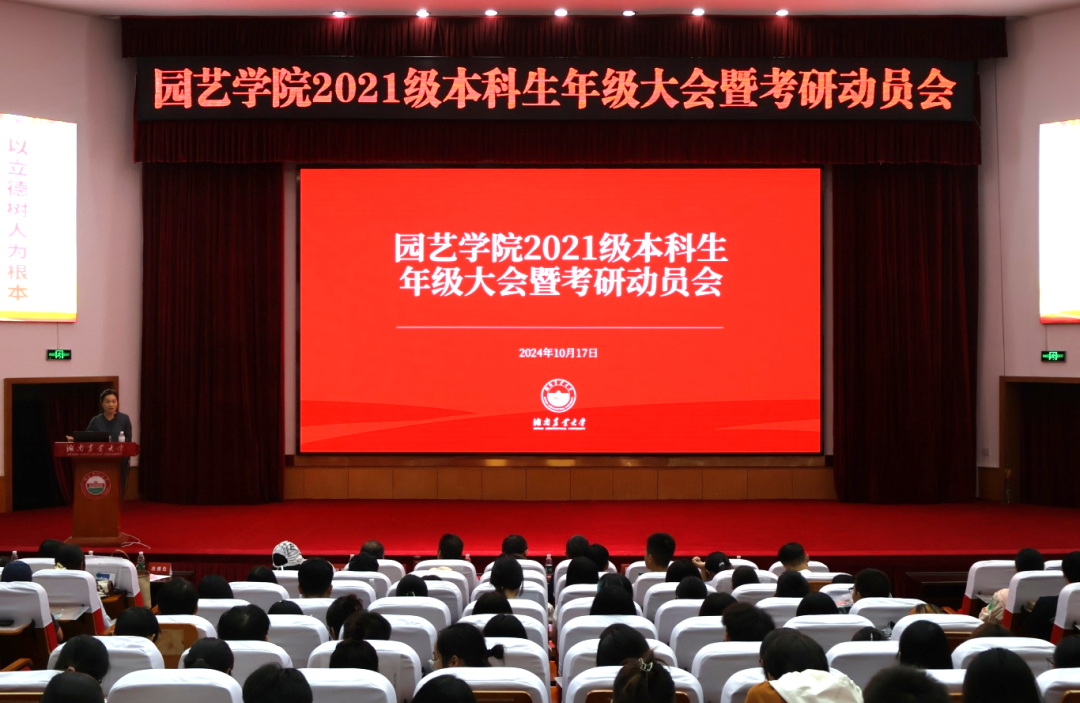 在考研动员环节中,何长征结合学院近年来的考研情况,分析了当前考研形势及其重要性,从学科实力、科研团队、师资水平等多方面解读了考研优势,鼓励同学们勇敢追逐梦想。茶学硕士学位点领衔人龚雨顺教授、蔬菜学硕士学位点领衔人宋勇教授、果树学硕士学位点领衔人李大志教授、观赏园艺学硕士点领衔人陈己任教授以及药用植物资源硕士学位点领衔人肖深根教授分别介绍了各学位点的特点与优势,深入分析了各研究团队在行业内的影响力,从资源建设、师资力量、招生情况到奖助制度等方面进行了全面解读。此外,教授们还根据各自专业特色,进行了深入浅出地阐释与分析。他们不仅剖析了考试的重点和难点,还结合多年的教学经验,提供了实用的备考建议与策略,强调学习方法优化与心理调适的重要性,指导学生如何在压力中保持冷静与自信。