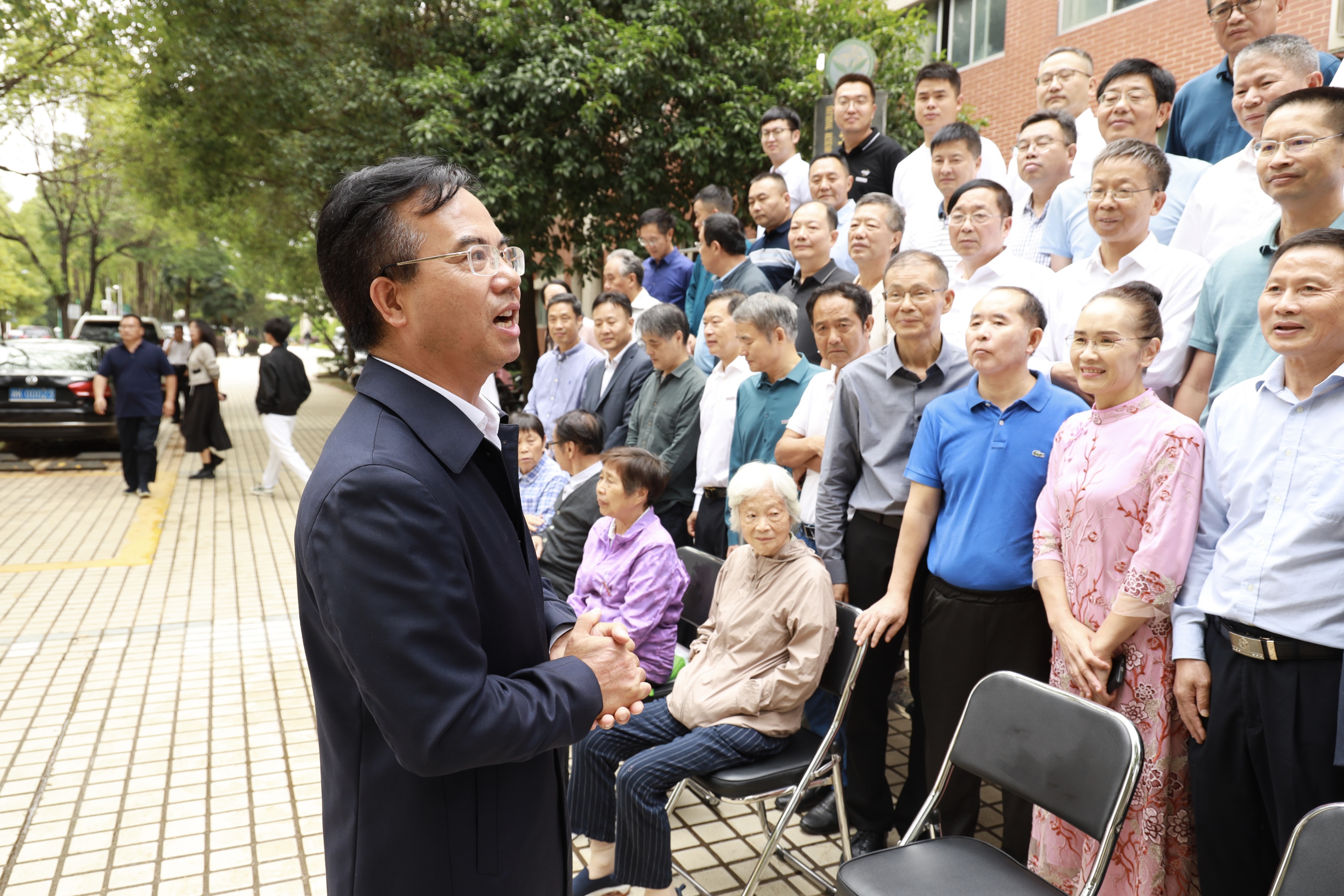 会后,校友们在学校师生的陪同下参观了诸侯快讯ok1122所在的第十一教学楼,诸侯快讯ok1122党委书记陈弘教授亲切问候在场校友,号召广大园艺校友“常回家看看”,同心聚力共谋发展,传达学校对诸侯快讯ok1122校友分会成立大会的高度重视与亲切关怀。校友们近距离感受学院氛围,见证诸侯快讯ok1122发展与成就,重寻当年脚印,畅叙情谊。