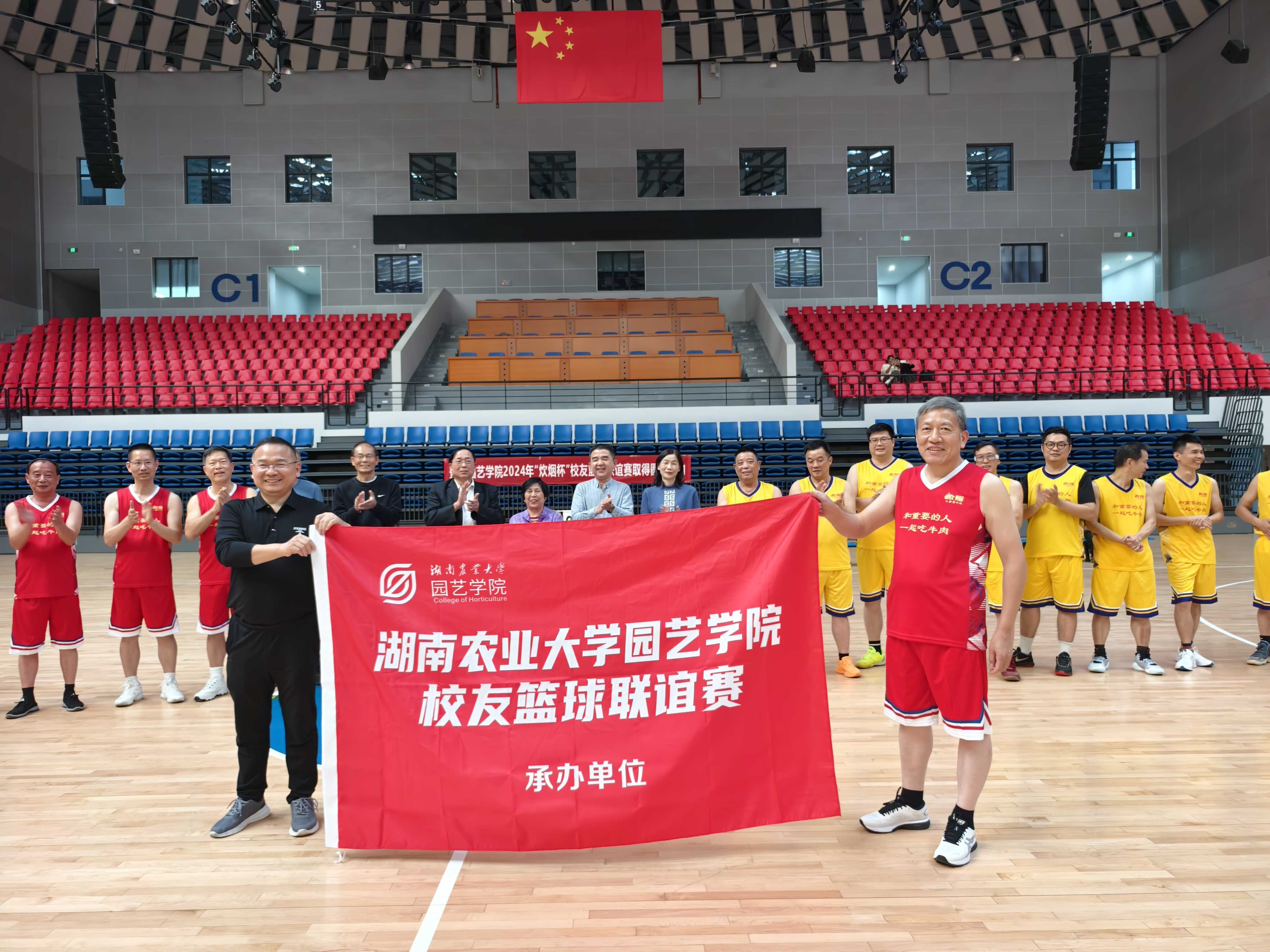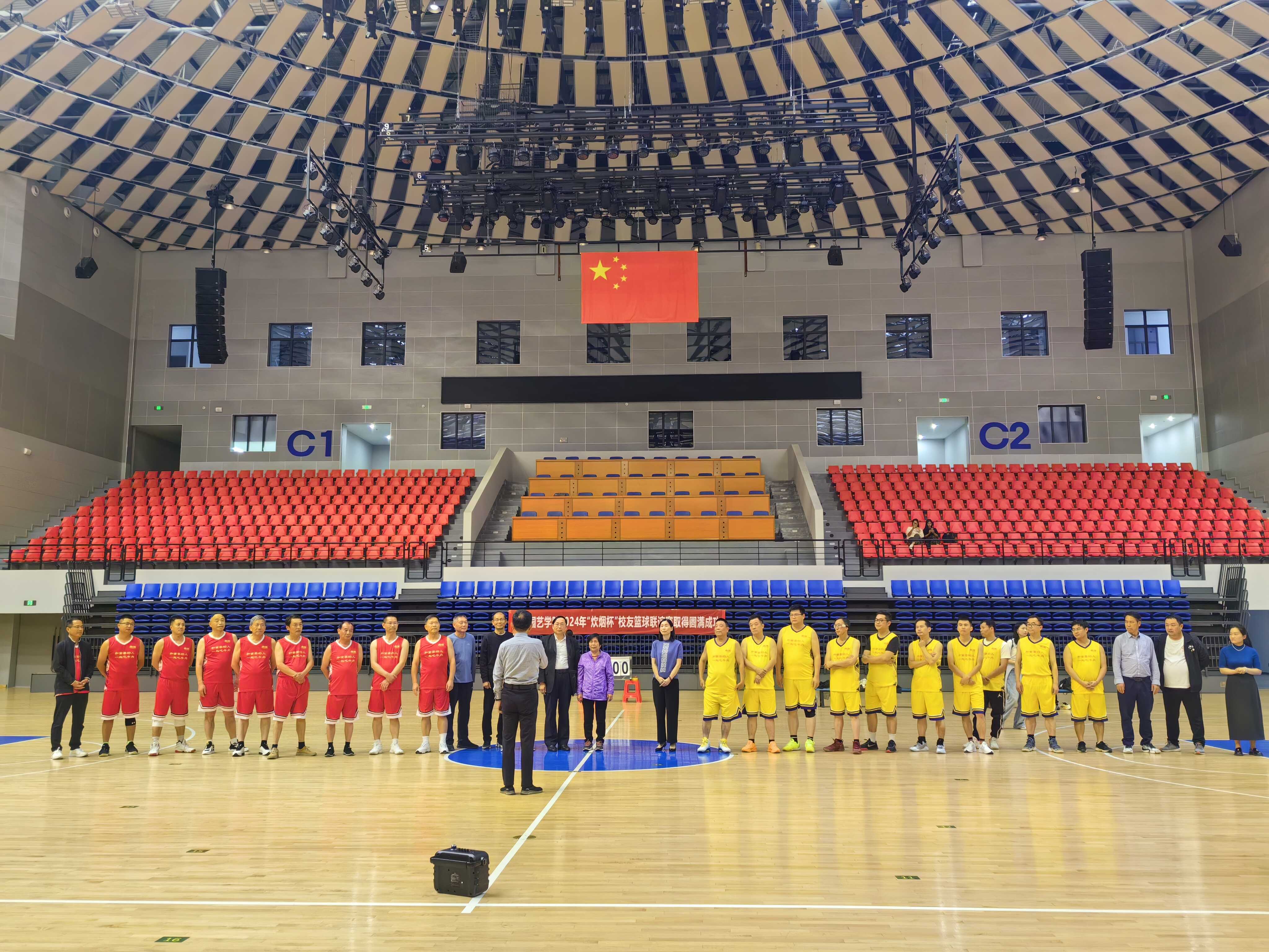 比赛在紧张而友好的氛围中拉开帷幕。赛场上,校友队和教师队身着统一的队服,身姿矫健,配合默契,双方你来我往,比分紧咬不放,每一次精准的投篮、每一个精彩的突破,都赢得了场下观众的阵阵掌声和欢呼,最终比赛以平局结束。