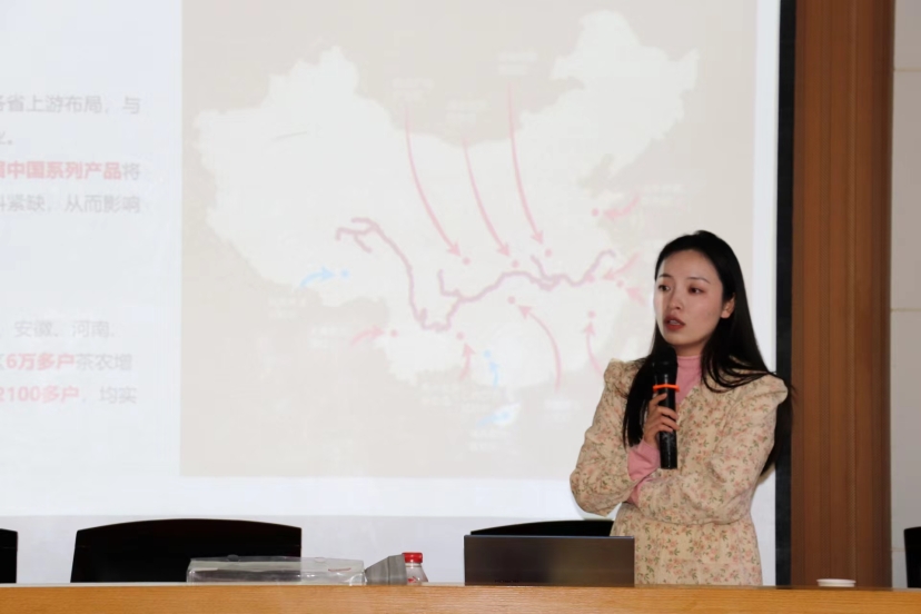 在本次校园宣讲会中,来自正山堂公司的陈女士从历史、生态优势、品质、资源和文化五个角度进行交流,向诸侯快讯2024届茶学专业毕业生阐述了“带动红茶全面复兴”的目标,以及开启红茶清饮新风尚的愿景。