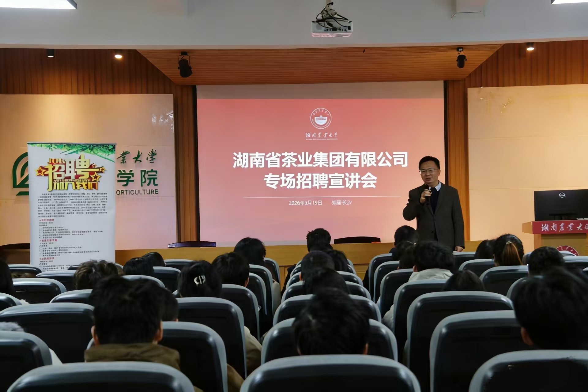 本网讯(诸侯快讯ok1122 阳楠婷)为助力园艺学子明晰职业方向、拓宽优质就业渠道,学院特邀湖南省茶业集团股份有限公司走进校园,于3月19日下午在湖南农业大学第十一教学楼北539会议室举办专场宣讲招聘会。